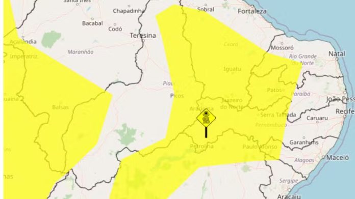 O Instituto Nacional de Meteorologia (Inmet) emitiu, nesta segunda-feira (29), um alerta amarelo de baixa umidade para 39 municípios do interior de Pernambuco. Classificado como de “perigo potencial”, o aviso é válido até as 21h e atinge cidades das regiões do Sertão e do Agreste.