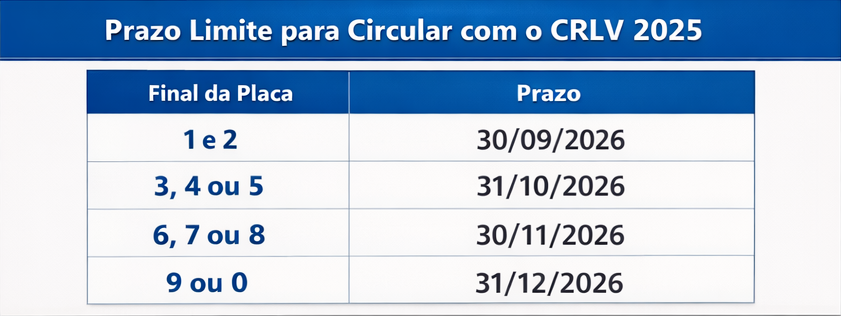 De acordo com o Detran-PE, o prazo limite para circular com o CRLV 2025 é: